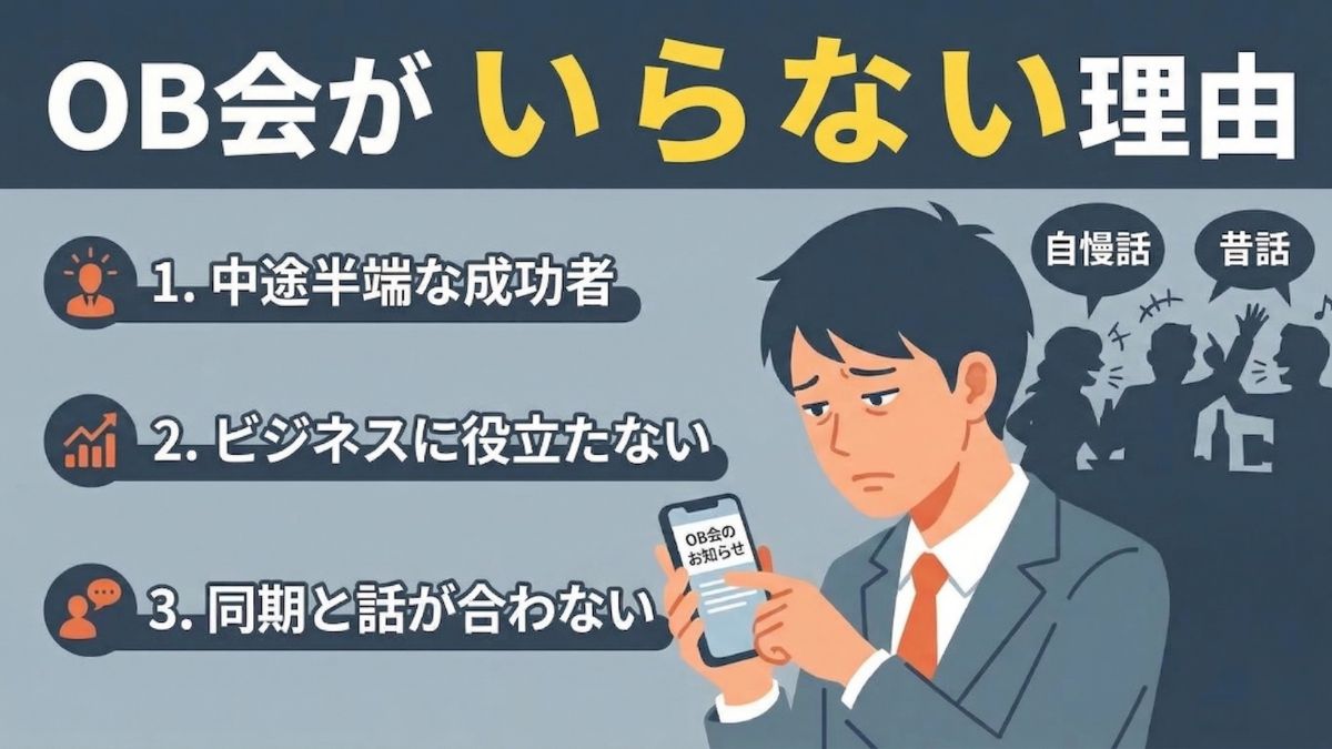 OB会がいらない最大の理由は、めんどくさいだけでなく、参加しても得られるものがほぼゼロだからです。